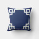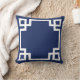 Travesseiro do padrão chave grego em azul e branco marinho escuro. Uma impressão gráfica, moderna, gráfica.