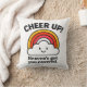 Christian throw pillow featuring a smiling cloud and retro rainbow. The uplifting message “Cheer Up — Heaven’s Got You Covered” adds comfort, hope, and positivity to any space. Perfect for kids’ rooms, living rooms, and encouraging gifts.