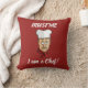 Cabeça de chef com chapéu, corcunda vermelha e texto personalizado.