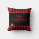 Almofada Cheque de Buffalo Negro Vermelho com Rena de Pera