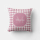 Pegue uma garota com esse travesseiro decorativo quadrado branco e rosa-chico, com um padrão de azulejo de diamante geométrico verificado. Personalize este design de na moda adicionando seu nome e monograma inicial. Esta é parte da Coleção de Cores do Decor do Quarto de Cashmere Rosa.