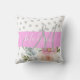 Travesseiro decorativo de monograma chic e girly com flores cor-de-rosa floral primavera e cor-de-pêssego e um fundo branco com bolinhas cinzas. Seu nome personalizado e monograma são escritos em um elegante roteiro branco e cinza com letras de mão com um fundo rosa. Você pode alterar a cor do texto, o estilo e o tamanho da fonte usando a opção personalizar.