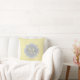 Um travesseiro decorativo quadrado de padrão reprodutor arquitetado de padrão redimensionado deco-amarelo com um crachá quatrefoil de cinza mole que você pode personalizar adicionando facilmente seu próprio monograma e nome. Esta é parte da Coleção de Primavera de Monograma de Mist Monograma de Meadowlark Scallops.