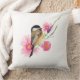 Bela ave-de-bico-de-cabeça-branca pintada em aquarela com flores rosa e roxo pintadas pela artista Jennifer Steffen. Terceiro em um conjunto de três. Design do Emporium de Jenn.