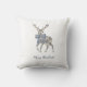 Adicione um travesseiro decorativo de Natal na moda à sua decoração. Apresenta uma design de renas de chinoiserie francesa azul com arco de coquete e texto "Feliz Natal" editável que você pode ajustar à saudação de sua escolha.