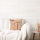 Um doce design travesseiro decorativo adornado com um bloco de texto de chocolate, chocolate escuro e amêndoas em inglês, francês e alemão, além de outras palavras, em vários estilos de fonte, tamanhos e cores sobre um fundo pastel de pêssego em ambos os lados do travesseiro. Na coluna à direita em Escolha suas opções, você também pode selecionar o Travesseiro lombar.
