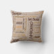 Um doce design travesseiro decorativo mostrando um bloco de texto com chocolate, chocolate escuro e amêndoas em inglês, francês e alemão, além de outras palavras em diversos estilos de fonte, tamanhos e cores sobre um fundo bege em ambos os lados do travesseiro. Na coluna à direita em Escolha suas opções, você também pode selecionar o Travesseiro lombar.
