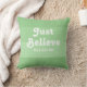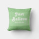 Este travesseiro bonito apresenta faixas verdes junto com um verso Bíblia do Evangelho de Mark.