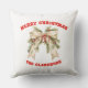 Elegant Modern Christmas Angel with Family Name Pillow designed with a beautiful angel dressed in a long gown and red ribbon on a white background. The front text includes: Faith Hope Love. The reverse text includes: Merry Christmas along with your Family Name. To personalize simply insert your family name into our easy template, replacing the sample. Makes a great Christmas gift for someone special, or to decorate your home for the holidays.