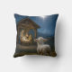 A little lamb gazes intently at a captivating nativity scene nestled in a charming rustic stable, all illuminated by a brilliant shining star above