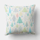 Brighten your holiday decor with this lively Christmas pillow featuring a seamless pattern of stylized trees in green, blue, and red, scattered among delicate snowflakes and colorful dots. Set against a crisp white background, the design blends geometric charm with festive whimsy—perfect for modern seasonal styling, kids’ rooms, or cheerful winter accents.