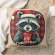 A charming raccoon dressed in a Santa hat holds a steaming mug of cocoa before a red buffalo plaid backdrop, capturing the cozy spirit of a rustic woodland Christmas. The combination of festive red, soft gray fur, and classic flannel pattern brings warmth and nostalgia to the holiday season. With its blend of whimsy and modern country style, this cheerful design perfectly embodies the charm of winter mornings and Christmas gatherings. AI generated artwork.