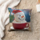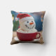 A charming snowman wearing a festive Santa Claus hat, delightfully nestled in a warm cup of hot chocolate