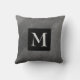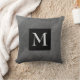Este travesseiro decorativo personalizado monograma tem um fundo abstrato em tons de cinza de carvão com texto para decoração doméstica e acessórios.