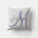 Almofada Cinza moderna e Monograma roxo