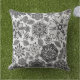 Almofada Cinza Negra Branca Retro Arte Floral Padrão Invisí