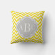Cinza quínica e padrão quatrefoil amarelo-quevron e marroquino travesseiro decorativo com monograma de 3 letras. Almofadas de travesseiro de faixa de zague elegantes para dentro ou fora, sofá, cadeira ou cama. Cor de ziguezague personalizável. Decoração de impressão para casa personalizada para quarto de criança, espaço de vida, creche de bebês, jardim etc. Acessórios decorativos para negócios modernos em casa ou em casa. Adicionar iniciais e letras do apelido da família