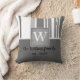 cinza personalizada monograma e padrão de faixas brancas com texto para personalizar para decoração doméstica exclusiva.