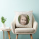 Imagem em círculo centralizado enquadrada por nome de script e data de serif arquivados em desvio. Definido em um fundo de marfim, este travesseiro de tom neutro traz detalhes pensativos com contraste suave e um layout limpo para mostrar seu momento.