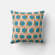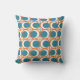 Este travesseiro decorativo tem um moderno design do século médio de círculos laranja abertos com círculos de metais sólidos correndo pelo padrão com linhas verticais lacrimogêneas e linhas horizontais laranja.