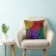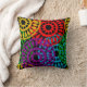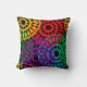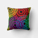 Este travesseiro decorativo tem um design de História Negra de grandes círculos formados a partir de formas de chuva e círculos em vermelho, amarelo, roxo, verde e turquesa.
