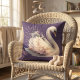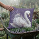 Almofada Cisne em Aquarela com Florais de Lavanda