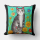 Um travesseiro bonito para amantes de gatos. Gato colorido, gatinho e flores, estilo de arte popular, gerada por IA com trabalho de arte.