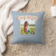Travesseiro decorativo de graduação floral moderno, cor-de-rosa, classe 2021, com um quadro rosa pincelado e preto sobre sua escolha de foto. A parte traseira apresenta outra foto e mais detalhes sobre seu formando.