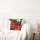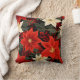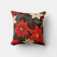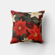 Lindas e clássicas cores de vermelho, branco, verde, ouro e preto. Travesseiro decorativo floral tradicional de Natal festivo com padrão de flores de poinsettia, bagas e folhas de cor aquosa.