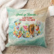 Uma almofada de festa de solteira de praia tropical para comemorar sua última noite antes do casamento. Convide, aproveite e celebre com seus familiares e amigos mais queridos. Presente de festa perfeito para um tema de coquetel de praia. O design apresenta praia tropical, águas azuis, coquetéis, frutas tropicais e oceano. Fácil de personalizar com sua escolha de texto e script.