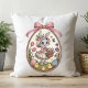 Entre num conto de fadas de primavera com este exquisito travesseiro de Páscoa em estilo vintage! Capturado dentro de uma moldura oval rendilhada decorativa e encimado por uma linda fita rosa, esta ilustração caprichosa apresenta uma doce coelhinha menina vestida à vitoriana segurando uma cesta de flores de primavera. Rodeada por tulipas floridas, ovos de Páscoa coloridos e adoráveis pintinhos amarelos, este design traz um charme nostálgico para a decoração da sua casa nas festas de Páscoa. Perfeito para quartos de berçário, como acessório para a sala de estar ou como um presente de Páscoa de alta qualidade para amantes da arte vintage!