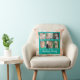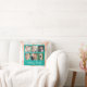 Este travesseiro decorativo apresenta uma colagem de seis quadros de fotos para que você adicione fotos de sua família. Este travesseiro teal e laranja faz uma maravilhosa adição à sua casa ou um dom exclusivo.