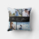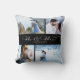 Personalize esta almofada de lançamento com caligrafia moderna e elegante com o nome da sua família, 4 fotos de casamento favoritas e será uma bela lembrança do melhor dia de todos! Ótimo presente para qualquer recém-casado, aniversário de casamento dos seus pais ou renovação de votos.