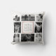 Esta almofada de lembrança de casamento apresenta uma colagem de fotos em preto e branco na frente e fotos coloridas no verso. Personalize esta almofada com seu nome e fotos.