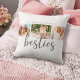 Um travesseiro decorativo moderno de colagem de fotos com melhores amigos, com a palavra bestie em uma bonito letra de script. Adicione 3 das suas fotos favoritas na frente do travesseiro. A parte traseira do travesseiro tem um padrão de bolinhas rosa e branco. Personalize-o com seu nome e seu melhor amigo. Faz um presente divertido. Projetado para você pelo Blackberry Boulevard.