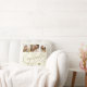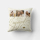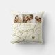 Colagem de fotos elegante e clássico dourado falso com caligrafia romântica do casal noivo, nome e data de noivado personalizados em almofada de lançamento de creme marfim.