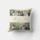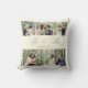 Colagem de fotos elegante clássica em dourado falso com caligrafia romântica Sr. e Sra., nome e data do casamento personalizados em almofada de lançamento de creme marfim.
