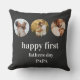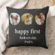 colagem moderna de 3 fotos '' FELIZ PRIMEIRO DIA DE OS PAIS PAPA travesseiro decorativo você pode mudar fotos e todos os textos.