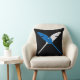 “(Fieldless) In saltire a pen azure and a pen argent.” Background color (shown black) can be changed on request. Back of pillow is a medieval-style pattern in coordinating colors.