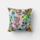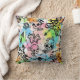 Colorful urban graffiti patchwork pattern throw pillow featuring bold abstract blocks, expressive brush strokes, scribbles, stars, and mixed-media textures in bright blue, yellow, pink, orange, and black. Energetic and edgy with a modern street art aesthetic, this seamless design is ideal for graffiti art lovers, maximalist style fans, creative teens, and contemporary art enthusiasts.