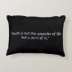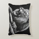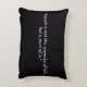 almofada preta com um esboço de leão de um lado e uma citação do outro lado