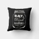 Travesseiro decorativo chique do frasco de pedreiro do país rústico preto e branco com citações. Coma a bebida e é casado. Design bonito da tipografia do vintage com impressão desvanecido. Decorações elegantes da festa de casamento ou decoração home para a sala de visitas/quarto. Texto rústico no frasco de vidro. Cor customizável do fundo.