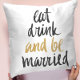 "Coma Beba e Seja Casado" Design de tipografia moderna divertida em dourado e preto sobre fundo branco