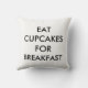 Este travesseiro preto-e-branco é decorado com o ditado bonito, Coma Cupcakes para o café da manhã na frente e atrás, fazer-o perfeito para um quarto, quarto ou sala de estar.