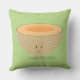 Este é um travesseiro decorativo quadrado com um fundo verde. Mostra a ilustração sorridente e caricatura de um personagem de melão. O feliz, meio cantaloupe olha do travesseiro de uma maneira amigável. O caractere de fruta é grande em um lado do travesseiro e mostrado em um padrão repetitivo no segundo travesseiro.