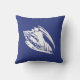 Ilustração de vintagem de mídia mista aprimorada digitalmente de uma shell Conch - marinho / azul indigo e travesseiro externo branco