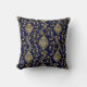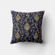 Este travesseiro único e atraente apresenta uma intrincada cor damasco de ouro no estilo espiral sobre um fundo azul profundo. Ambos os lados do travesseiro têm a mesma imagem. Elegante!