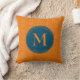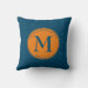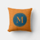 Travesseiro decorativo MONOGRAMA REVERSÍVEL simples e minimalista em LARANJA BRIGHT e AZUL OCEANO, com um grande monograma PERSONALIZÁVEL no centro. Há também um verso de Escrituras opcional - EU POSSO FAZER TODAS AS COISAS NO CRISTO no topo e na referência de Escrituras no final - FILIPIANOS 4:13. Há um sutil padrão de toning tiled no fundo. Também disponível em outras cores.