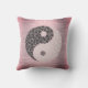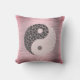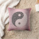 Um padrão de gradiente de tela metálica cor-de-rosa-claro criando um aspecto brilhante com uma rosa claro e símbolo yin yang preto feito de um padrão de mosaico circular para contraste. Elegante boho chic zen