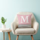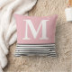 Almofada Cor-de-rosa simples com tiras B/W monogramadas